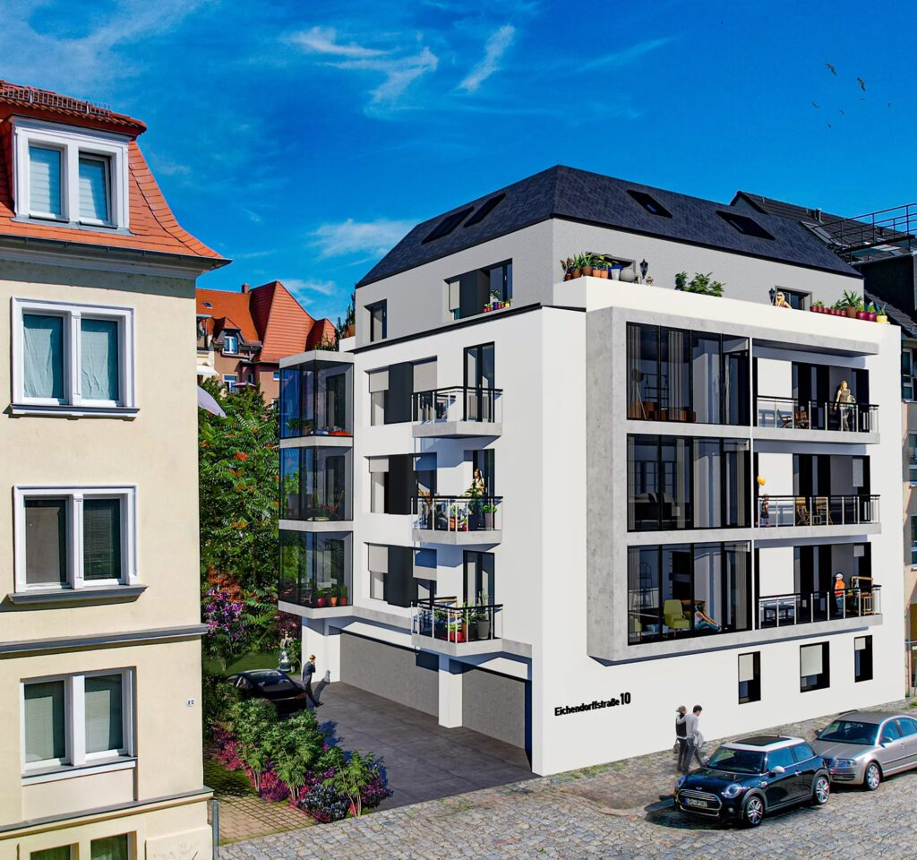 Eigentumswohnungen Eichendorffstraße 10 Neubau mit nur neun exklusiven Eigentumswohnungen (2–4 Zimmer, ca. 50–100 m²). Terrassen, Balkone oder Wintergärten je Wohnung, barrierefreier Zugang mit Aufzug sowie gemeinschaftlicher Garten. Hochwertige Ausstattung und individuelle Grundrissgestaltung. Provisionsfrei für Käufer.
