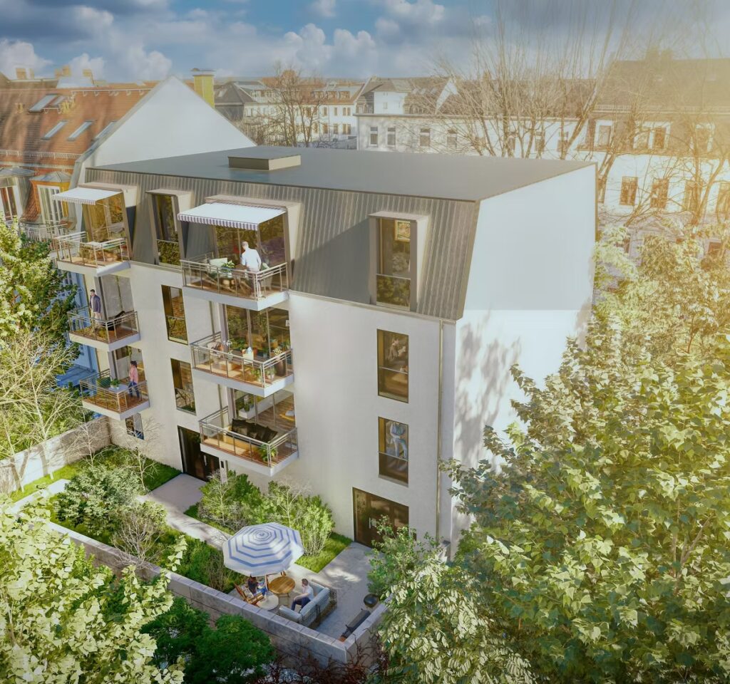 Dresden – Rietzstraße Neubau mit 11 modernen Eigentumswohnungen (2–3 Zimmer, ca. 60–85 m²) mit Terrasse oder Balkon. Barrierefreier Zugang mit Aufzug, gemeinschaftlicher Garten sowie Tiefgaragenstellplätze. Hochwertige Ausstattung und individuelle Grundrissgestaltung. Provisionsfrei für Käufer.